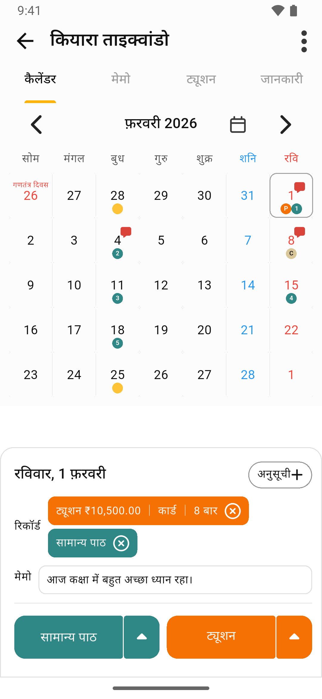 पाठ प्रबंधक ऐप का परिचय, जो आपको व्यक्तिगत ट्यूशन या अकादमी कक्षाओं को व्यवस्थित रूप से प्रबंधित करने की अनुमति देता है।